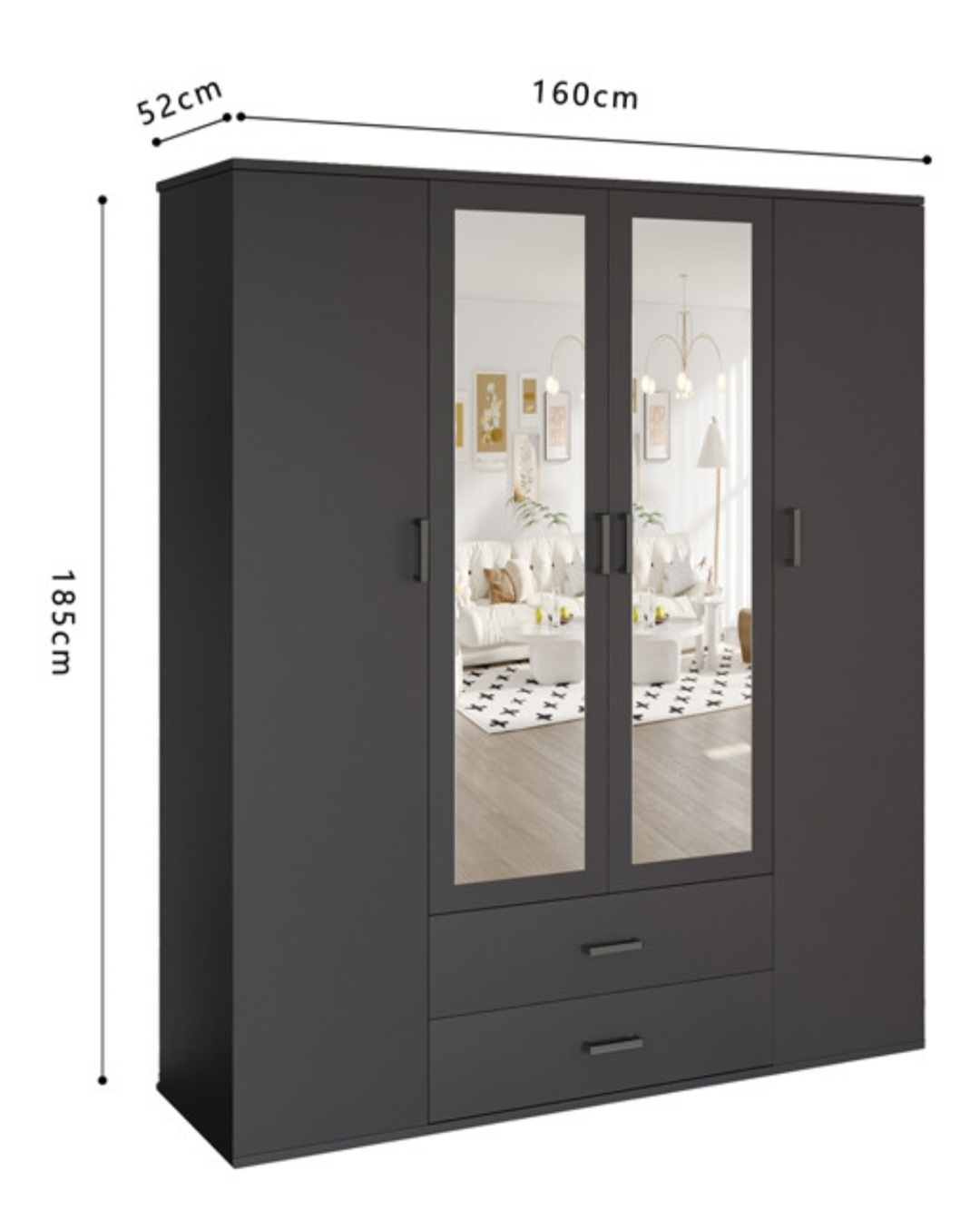 Soyez le premier à laisser votre avis sur “Armoire 160 Marc Gris foncé 4 portes avec 2 miroirs”