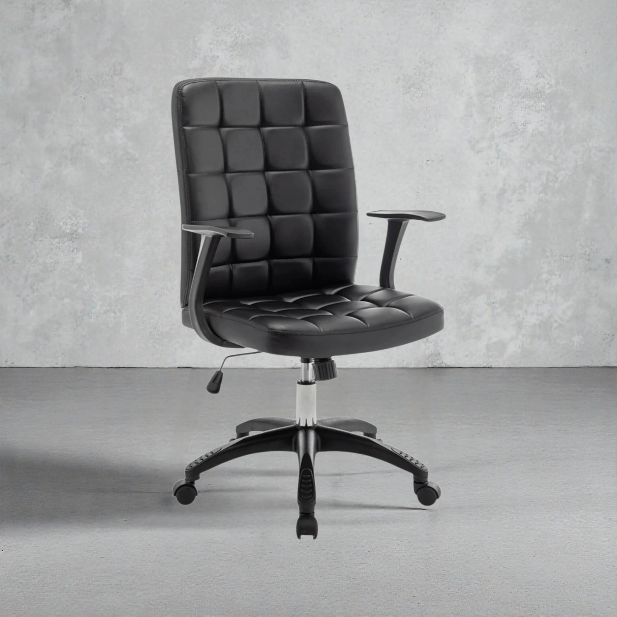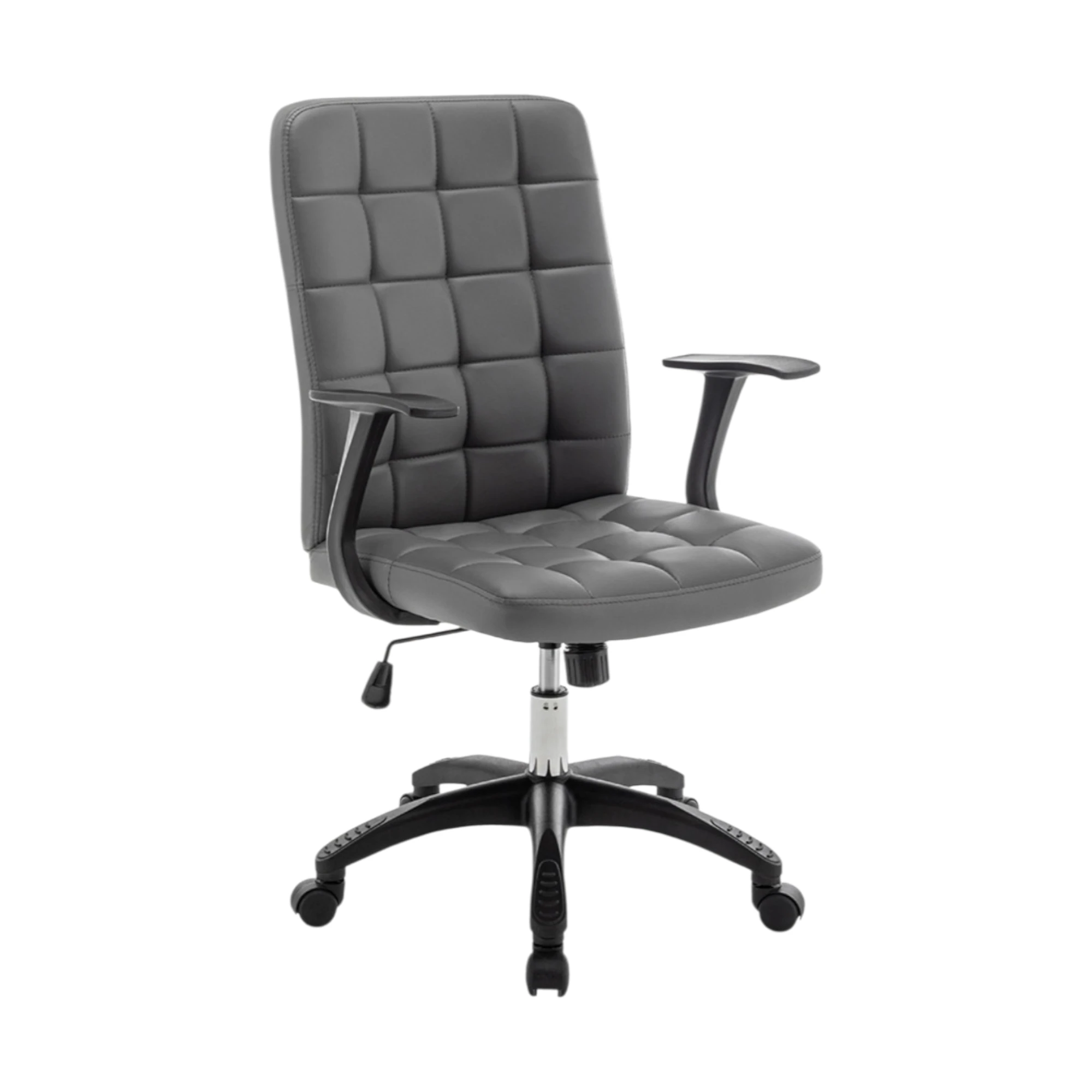 Cette chaise de bureau est équipée d’un vérin à gaz permettant un réglage en continu de la hauteur, afin d’adopter à tout moment une position ergonomique. La colonne centrale et les fixations en métal assurent solidité et longévité, tandis que la base et les accoudoirs en plastique rendent la chaise légère, maniable et facile d’entretien. Le revêtement en similicuir (PU) confère à la chaise une allure élégante, offre un confort agréable et se nettoie facilement, ce qui la rend idéale pour une utilisation quotidienne intensive.