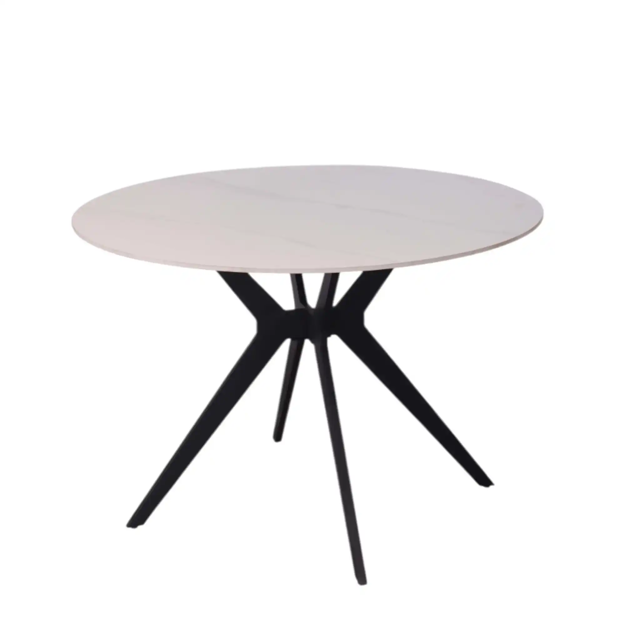 Cadre en métal, revêtu de poudre avec une laque structurée noire pour une surface mate et résistante à l’usure. Plateau de table en pierre frittée (Sintered Stone), composé de minéraux naturels et pressé puis cuit à haute température. Ce matériau est résistant aux rayures, à la chaleur et aux taches, facile d’entretien et durable, idéal pour une utilisation intensive.