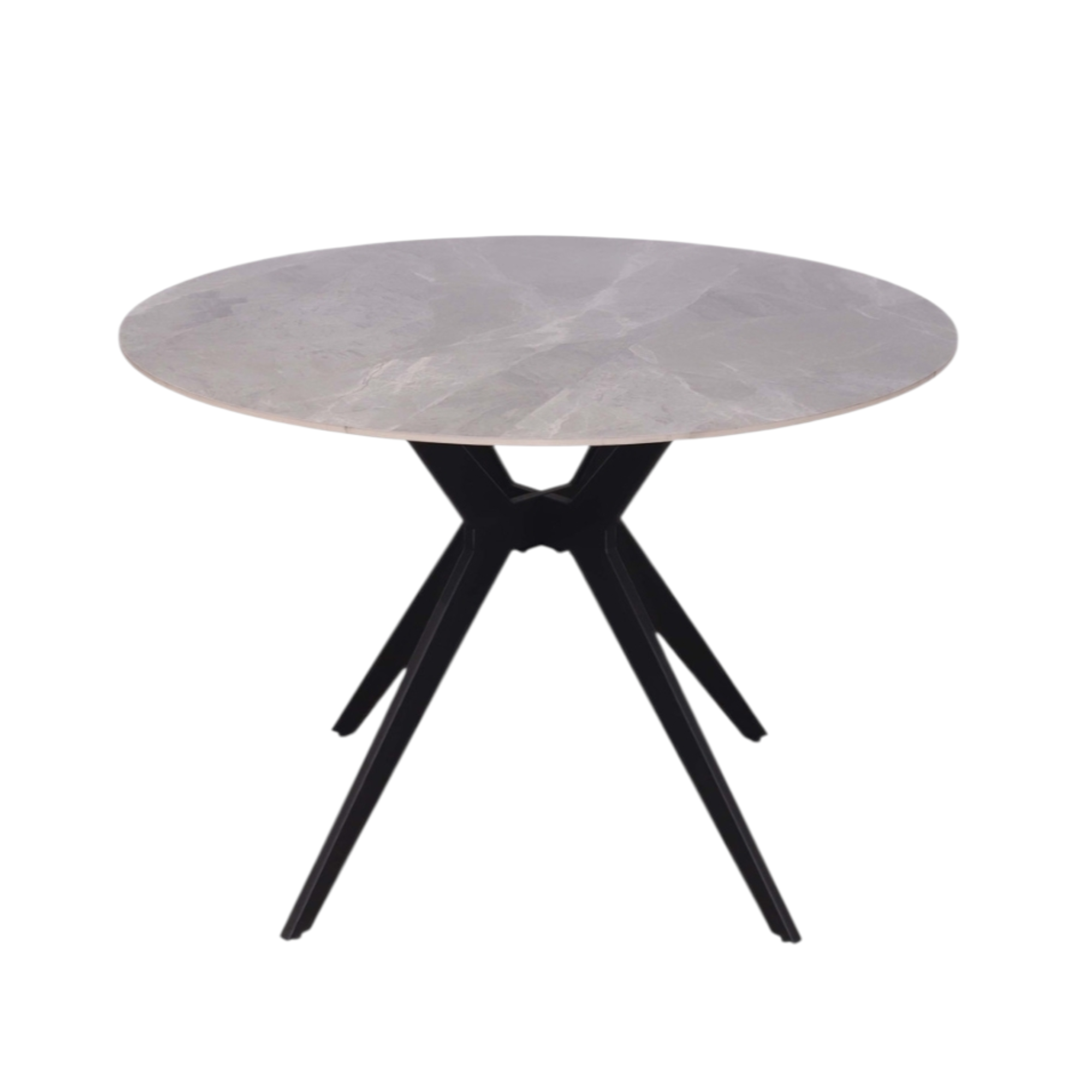 Cadre en métal, revêtu de poudre avec une laque structurée noire pour une surface mate et résistante à l’usure. Plateau de table en pierre frittée (Sintered Stone), composé de minéraux naturels et pressé puis cuit à haute température. Ce matériau est résistant aux rayures, à la chaleur et aux taches, facile d’entretien et durable, idéal pour une utilisation intensive.