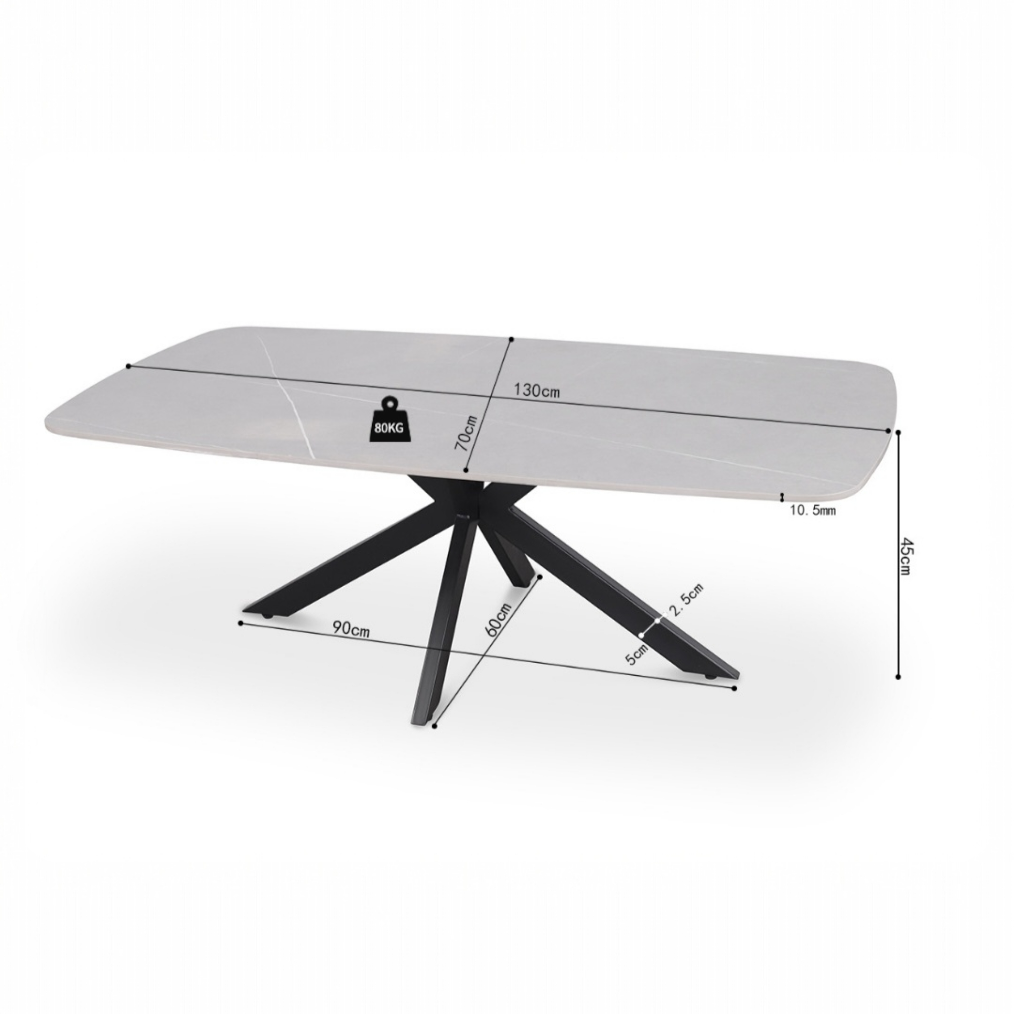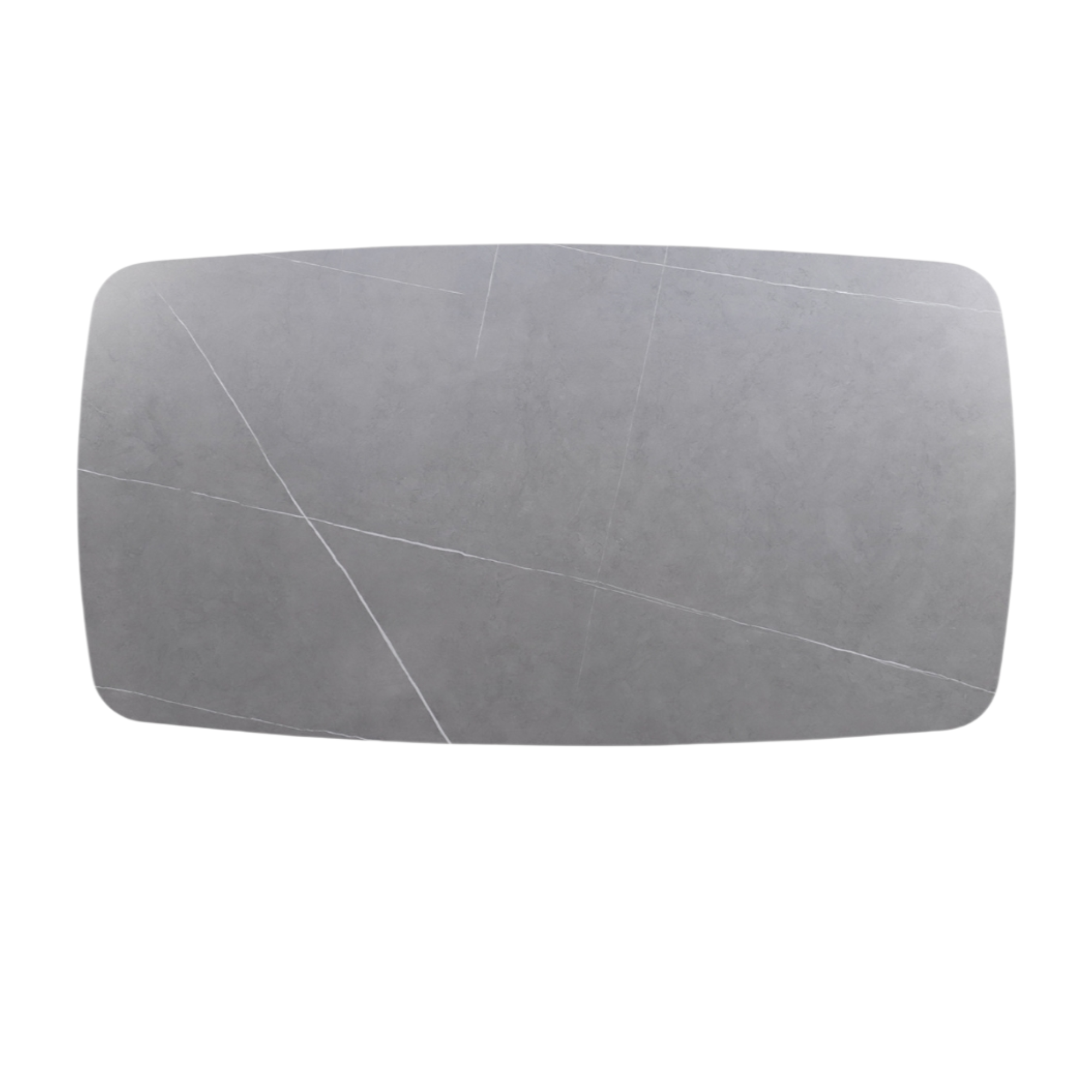 Cadre en métal, revêtu de poudre avec une laque structurée noire pour une surface mate et résistante à l’usure. Plateau de table en pierre frittée (Sintered Stone), composé de minéraux naturels et pressé puis cuit à haute température. Ce matériau est résistant aux rayures, à la chaleur et aux taches, facile d’entretien et durable, idéal pour une utilisation intensive.