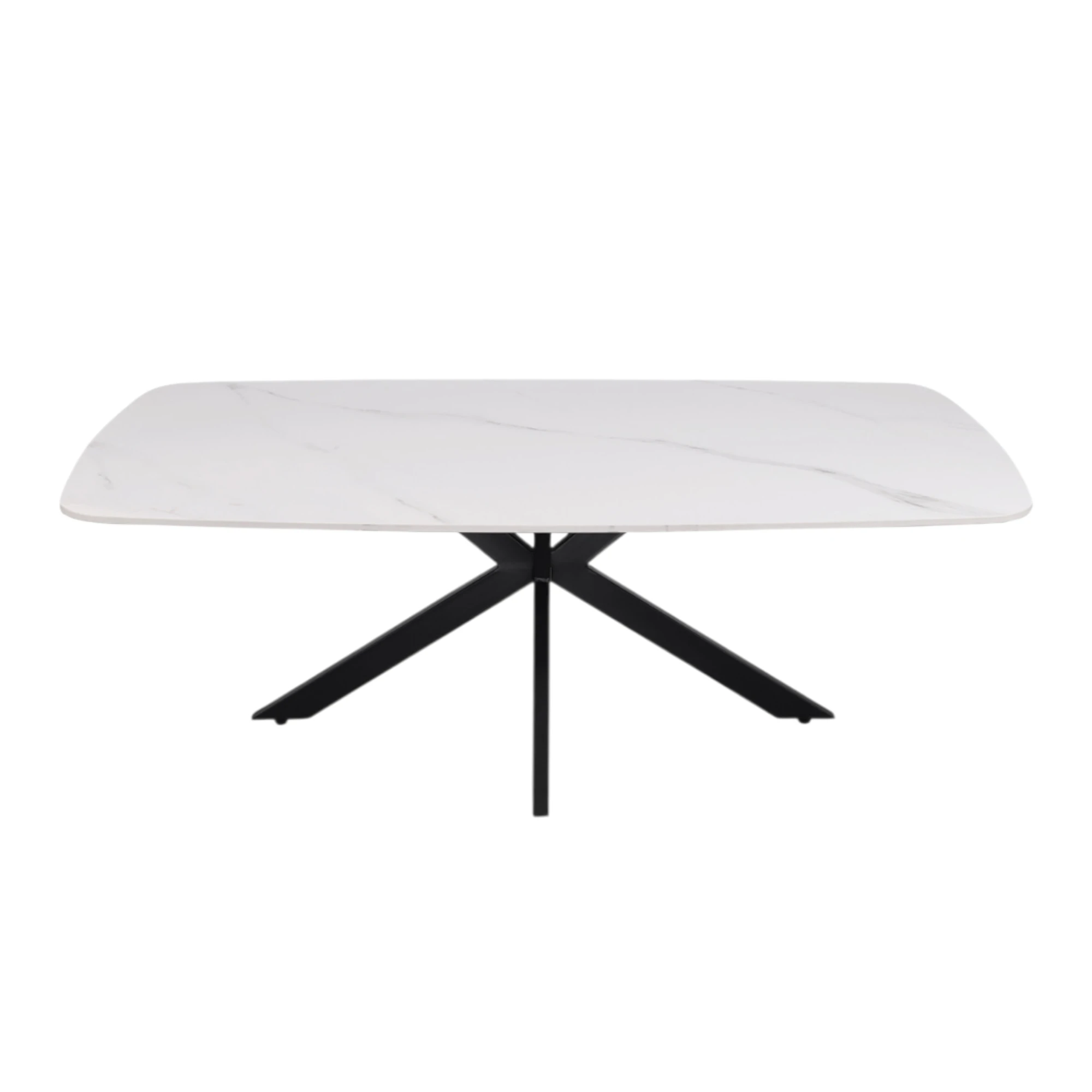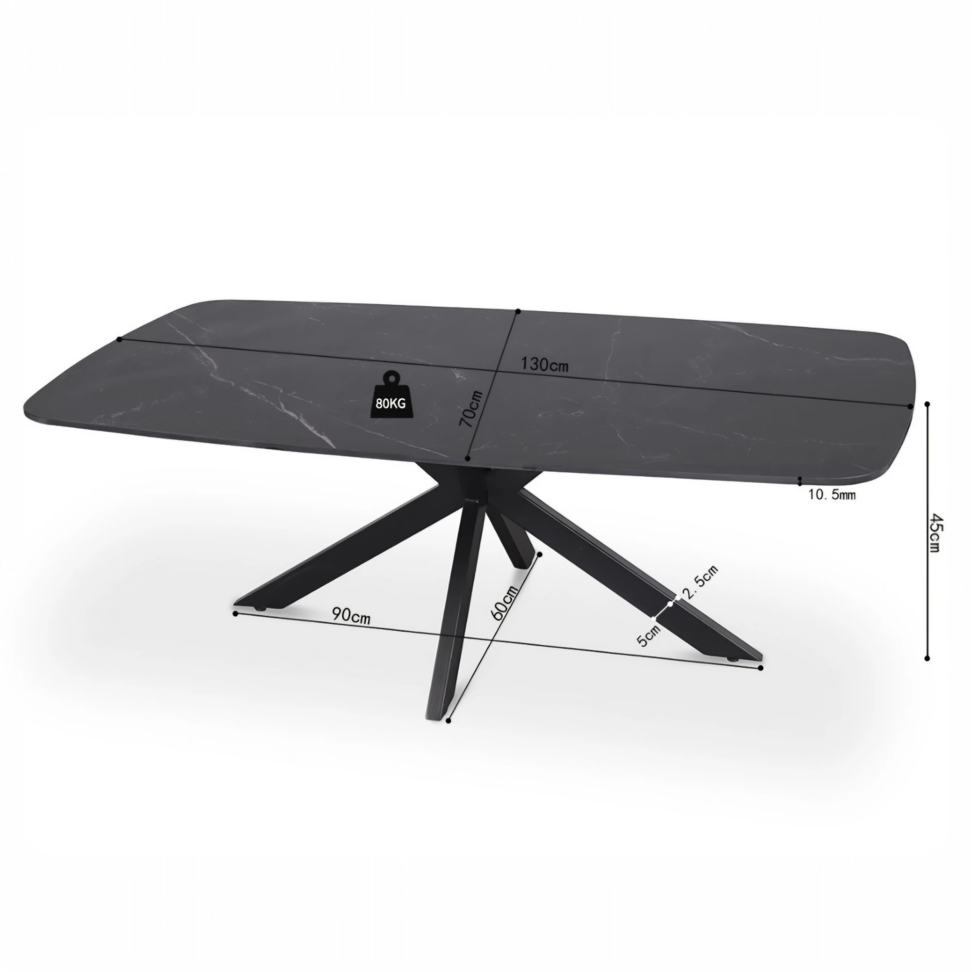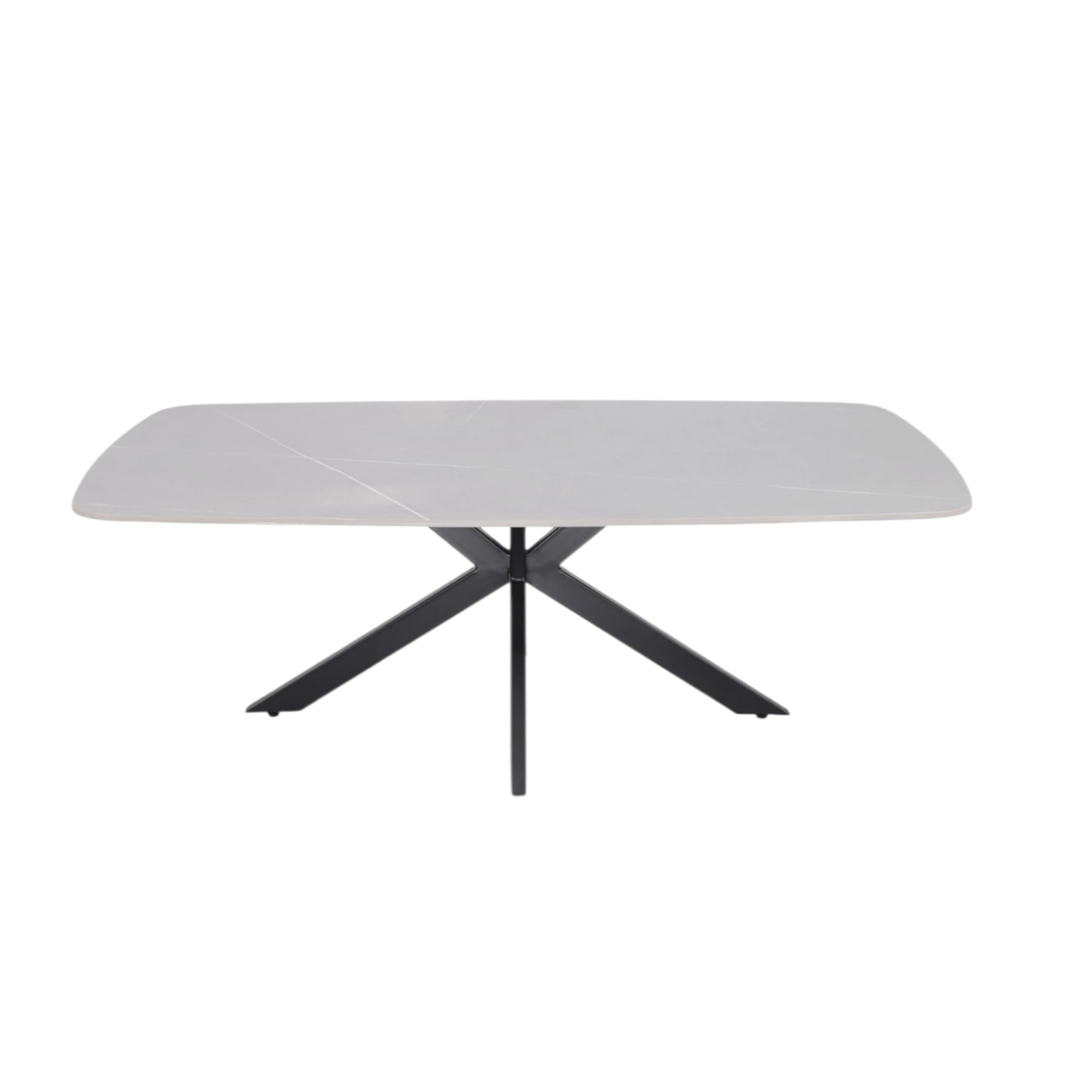 Cadre en métal, revêtu de poudre avec une laque structurée noire pour une surface mate et résistante à l’usure. Plateau de table en pierre frittée (Sintered Stone), composé de minéraux naturels et pressé puis cuit à haute température. Ce matériau est résistant aux rayures, à la chaleur et aux taches, facile d’entretien et durable, idéal pour une utilisation intensive.