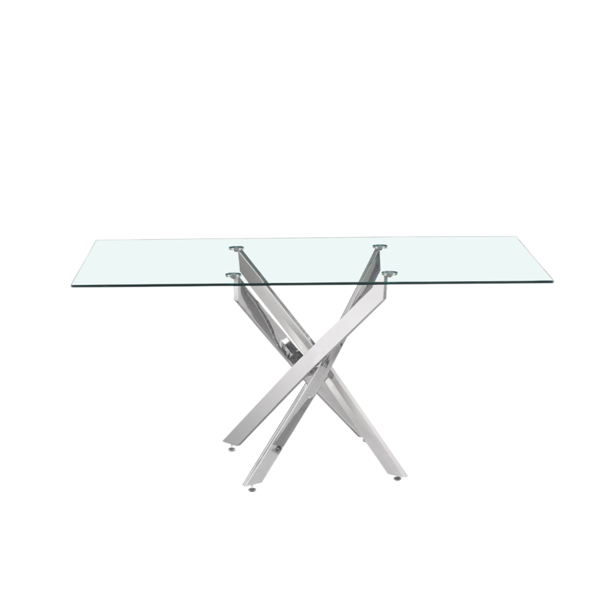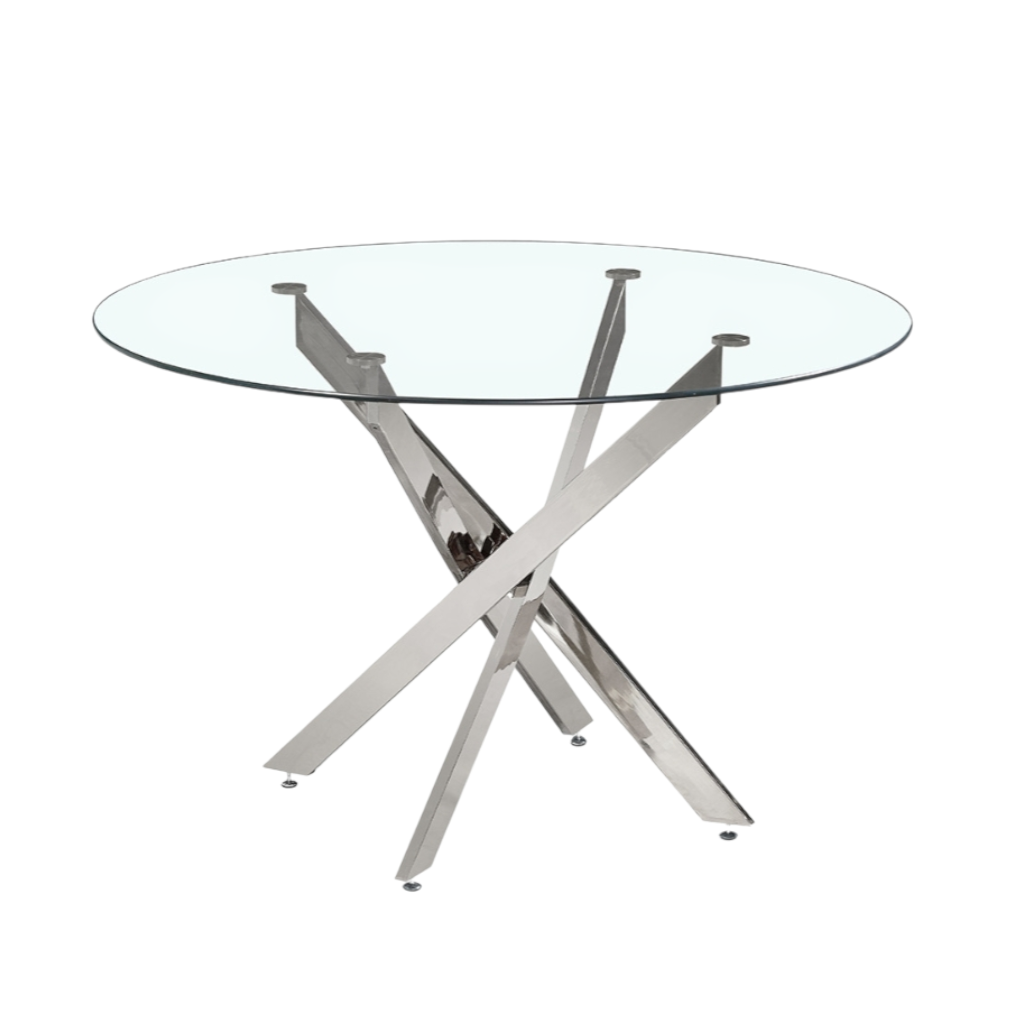 Cette table de salle à manger est facile à entretenir. Le plateau en verre se nettoie avec un chiffon doux et un peu de nettoyant pour vitres ; évitez les produits abrasifs afin de prévenir les rayures. Les pieds métalliques en chrome peuvent être dépoussiérés avec un chiffon sec ou légèrement humide, puis essuyés pour un résultat sans traces. N’utilisez pas de produits de nettoyage agressifs. Pour conserver la table en parfait état, évitez de poser directement des objets chauds ou tranchants sur le verre et utilisez toujours des dessous de verre.
